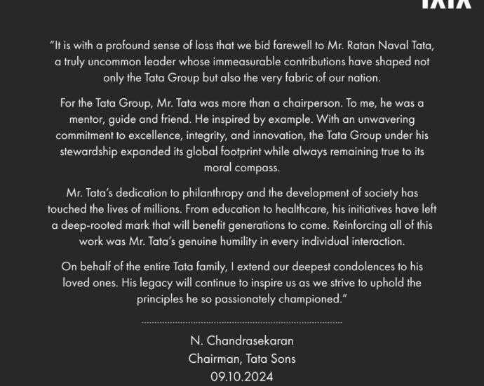 देश के प्रमुख उद्योगपति रतन टाटा के निधन से प्रधानमंत्री नरेन्द्र मोदी दुखी, ‘शब्द-चित्रों’ से किया याद 2024-10-10