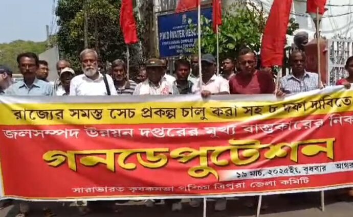 अखिल भारतीय कृषक सभा ने प्रदेश में सभी सिंचाई परियोजनाओं को शुरू करने समेत 8 सूत्री मांगों को लेकर सड़कों पर मार्च निकाला 2025-03-19