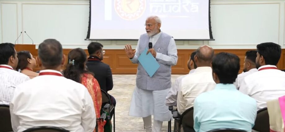 लाभार्थियों के साथ बातचीत के दौरान प्रधानमंत्री ने कहा कि मुद्रा योजना देश के युवाओं को अपने पैरों पर खड़ा होने का साहस देने के इरादे से शुरू की गई।