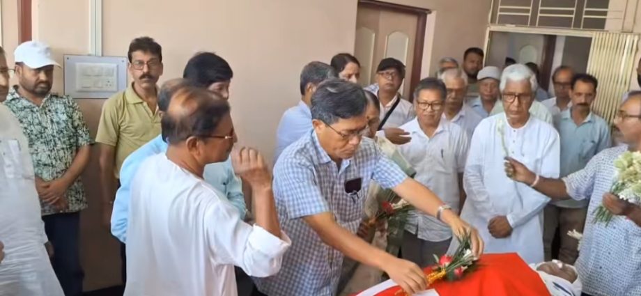 अगरतला, 17 मई: पोलित ब्यूरो सदस्य और सीपीआईएम के राज्य सचिव जितेंद्र चौधरी ने सीपीआईएम नेता बिजन आचार्य के निधन पर दुख व्यक्त किया। आज जब उनका पार्थिव शरीर मेला मैदान स्थित पार्टी कार्यालय ले जाया गया तो पूर्व मुख्यमंत्री माणिक सरकार, वाममोर्चा संयोजक माणिक डे, पूर्व मंत्री रतन भौमिक, पूर्व सांसद शंकर प्रसाद दत्ता और अन्य सीपीएम नेताओं ने उन्हें अंतिम श्रद्धांजलि दी।