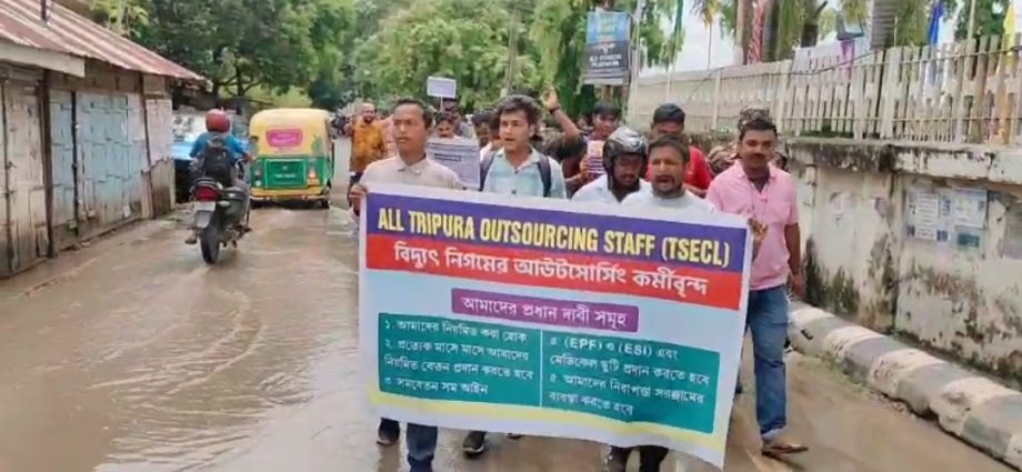 एक आउटसोर्सिंग कर्मचारी ने बताया कि पिछले पाँच वर्षों से त्रिपुरा राज्य विद्युत निगम लिमिटेड की सहायक कंपनी विज़न प्लस के अंतर्गत लगभग 600 कर्मचारी विभिन्न पदों पर कार्यरत हैं। विद्युत विभाग ने कहा था कि हर साल उनके वेतन में वृद्धि की जाएगी। लेकिन पाँच साल बीत जाने के बाद भी, वेतन में वृद्धि नहीं की गई है। उन्हें न्यूनतम वेतन पर ही अपना परिवार चलाना पड़ रहा है। कर्मचारियों ने यह भी आरोप लगाया कि पिछले 6 महीनों से उन्हें वेतन नहीं मिल रहा है। जब उन्होंने कंपनी के अधिकारियों से अपने वेतन के बारे में बात की, तो उन्हें बताया गया कि विद्युत विभाग बकाया वेतन का भुगतान नहीं कर रहा है। इसलिए, आज वे पाँच माँगों को लेकर एक प्रतिनिधिमंडल के साथ विद्युत विभाग के उपायुक्त से मिलने को विवश हुए हैं।
