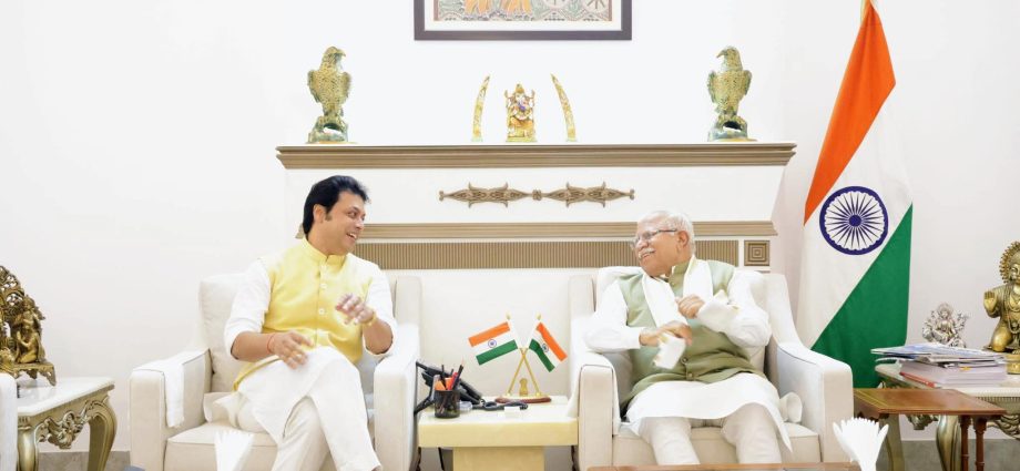 नई दिल्ली, 14 अक्टूबर: त्रिपुरा के पूर्व मुख्यमंत्री और राज्यसभा सांसद बिप्लब कुमार देब ने केंद्रीय ऊर्जा एवं शहरी विकास मंत्री मनोहर लाल खट्टर से मुलाकात की। आज हुई इस मुलाकात के दौरान, त्रिपुरा राज्य में बिजली और शहरी विकास क्षेत्र में चल रही विभिन्न परियोजनाओं पर विस्तार से चर्चा की गई।