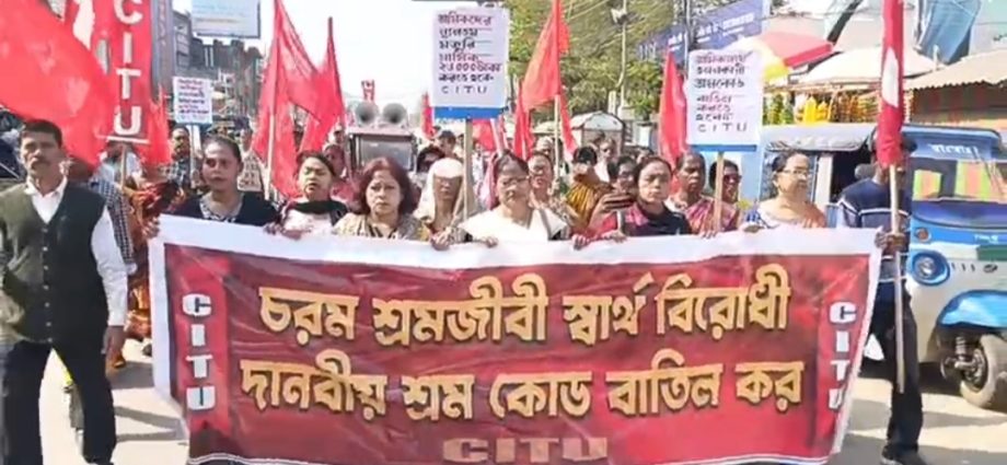 अगरतला, 4 दिसंबर: नए लेबर कोड को एक भयानक लेबर कोड बताते हुए CITU सड़कों पर उतरकर विरोध कर रहा है। आज मज़दूर और समर्थक सड़कों पर विरोध मार्च में शामिल हुए। आज का मार्च शहर की अलग-अलग सड़कों से होकर गुजरा।