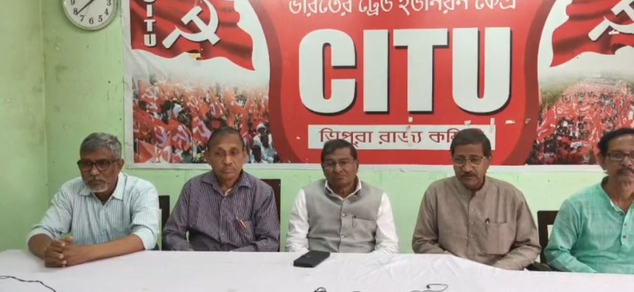 अगरतला, 4 फरवरी: देश के मज़दूर और किसान देश बनाने की चाबी हैं। लेकिन दुर्भाग्य से, केंद्र सरकार के राज में उनकी ज़िंदगी मुश्किल हो गई है। इसके खिलाफ़ सभी को मिलकर लड़ना होगा। इसलिए, CITU ने MGNREGA स्कीम को फिर से शुरू करने और 4 लेबर कोड को रद्द करने की मांग को लेकर 12 फरवरी को आम हड़ताल का आह्वान किया है। राज्य नेता शंकर प्रसाद दत्ता ने आज एक प्रेस कॉन्फ्रेंस में केंद्र सरकार के खिलाफ़ आवाज़ उठाते हुए यह बात कही। इसके साथ ही, उन्होंने हर तबके के लोगों से हड़ताल को सफल बनाने का आह्वान किया।